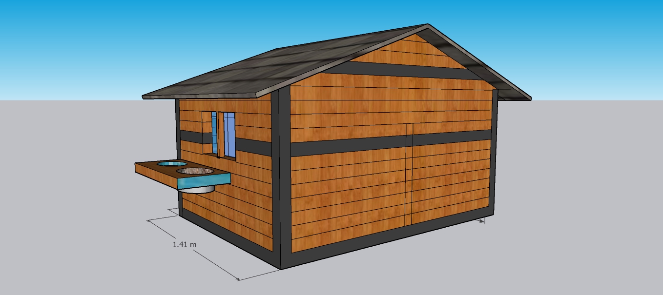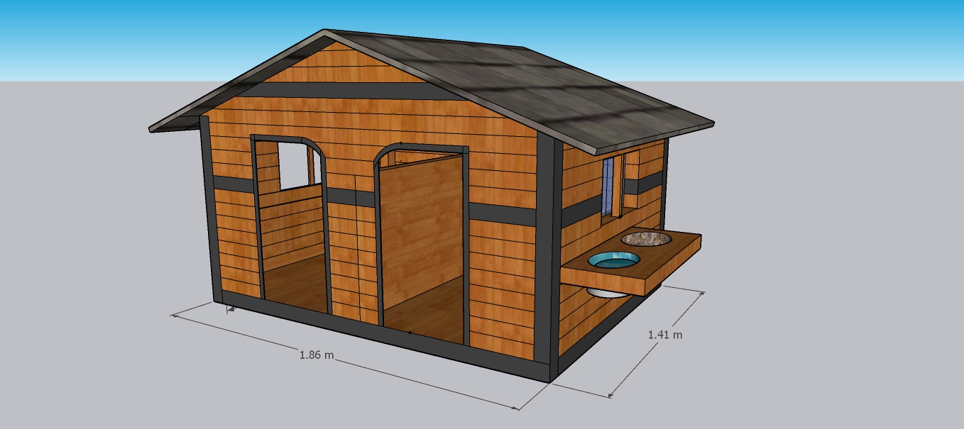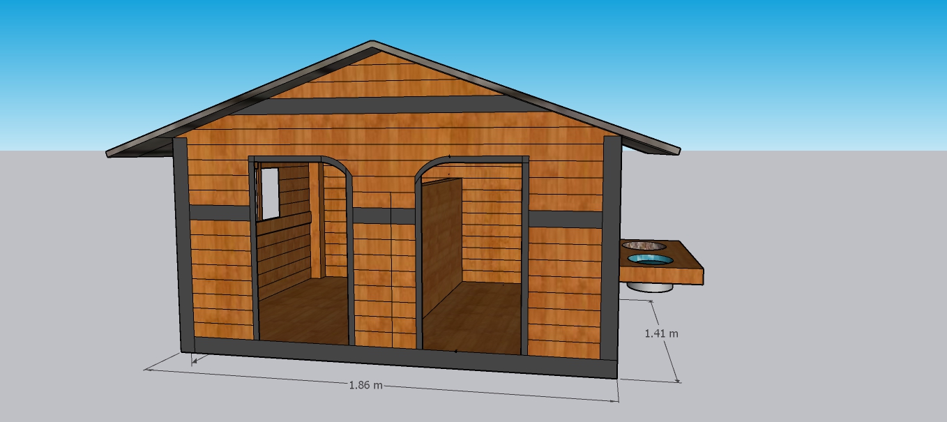 CASA TIPO GRANERO FABRICADA EN TUBULAR METALICO FORRADA CON MADERA DE PINO COLOR NATURAL CON BARNIS MARINO PARA FACILITAR SU LAVADO. DOBLE INGRESO Y CAPACIDAD PARA 2 MASCOTAS.